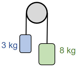 Aceleración en una máquina de Atwood (6797) Sábado 26 de septiembre de 2020, por F_y_Q | Dinámica Segunda ley de Newton RESUELTO ¿Con qué aceleración se moverán una máquina de Atwood formada por dos masas de 8 y 3 kg?