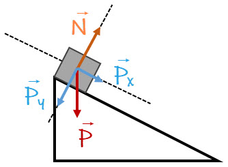 Un bloque se encuentra en un plano inclinado sin fricción como el de la figura. Si la masa del bloque es de 7 kg y el ángulo del plano es