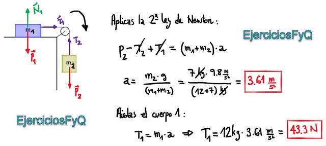 Aceleración y tensión en la cuerda que une dos cuerpos (254)