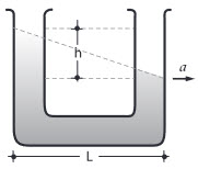 Un tubo en U de sección transversal constante, que contiene un líquido, es acelerado hacia la derecha con una aceleración constante a, como indica la figura. ¿Cuál es la diferencia de alturas h entre las columnas de líquidos de las ramas verticales?