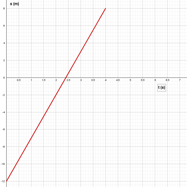 La posición de un cuerpo que se mueve sigue la ecuación: s = -12 + 5t.