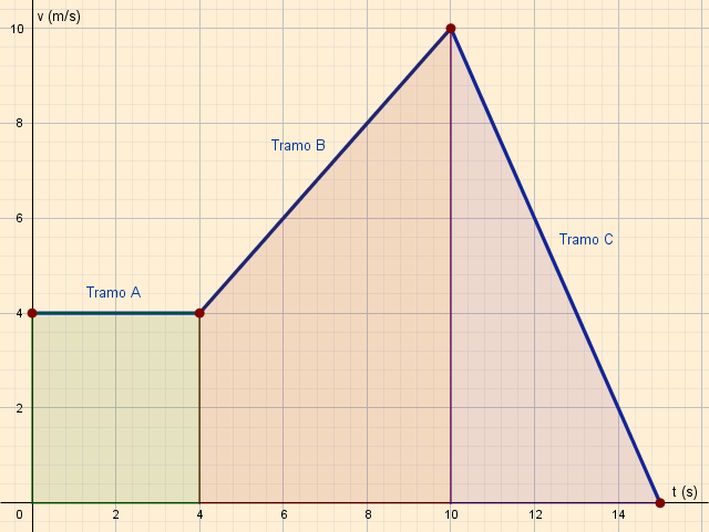 A partir de la siguiente gráfica v-t de un cuerpo que sigue una trayectoria rectilínea, determina para cada tramo: