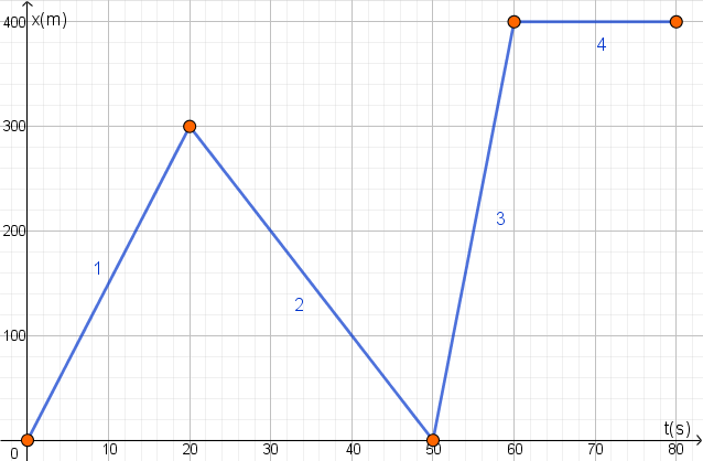 El movimiento de un automóvil viene representado por la siguiente gráfica posición-tiempo: