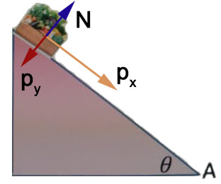 cuando llega a la base del plano (punto A):