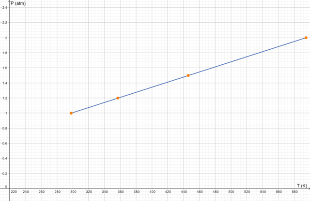 En el laboratorio se obtienen los siguientes datos sobre un sistema gaseoso que ocupa un volumen fijo de 5 L: