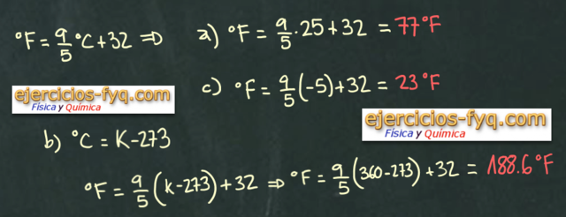 Cambio de temperatura a escala Fahrenheit (505) Miércoles 24 de febrero de 2010, por F_y_Q | Unidades Temperatura RESUELTO Expresa en la escala Fahrenheit las siguientes temperaturas: a) ; b) 360 K ; c)