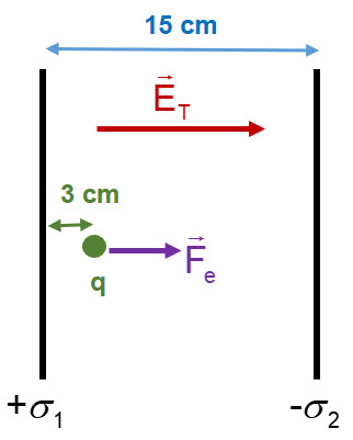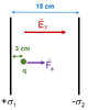 Campo eléctrico entre dos placas y fuerza eléctrica sobre una partícula en su interior (6613)