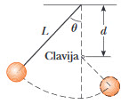 Un péndulo, que consta de una cuerda ligera de longitud L y una esfera pequeña, se balancean en el plano vertical. La cuerda golpea una clavija ubicada a una distancia d bajo el punto de suspensión, como se puede ver en la figura. Demuestra que si el péndulo se libera desde la posición horizontal (