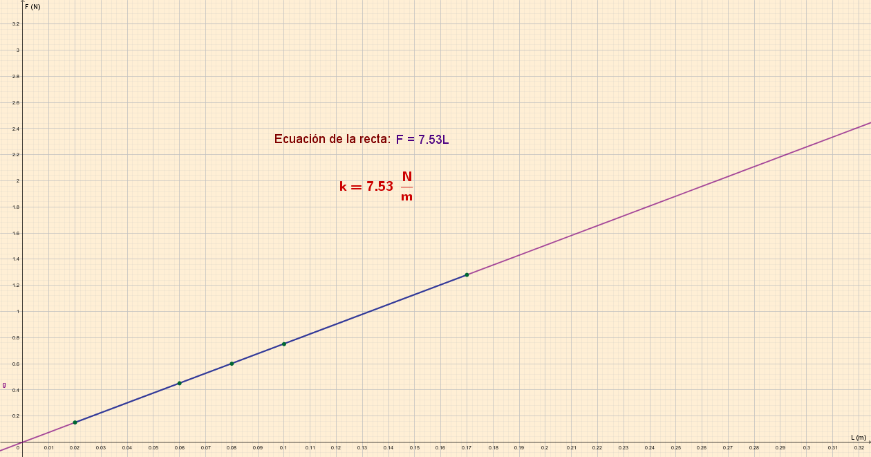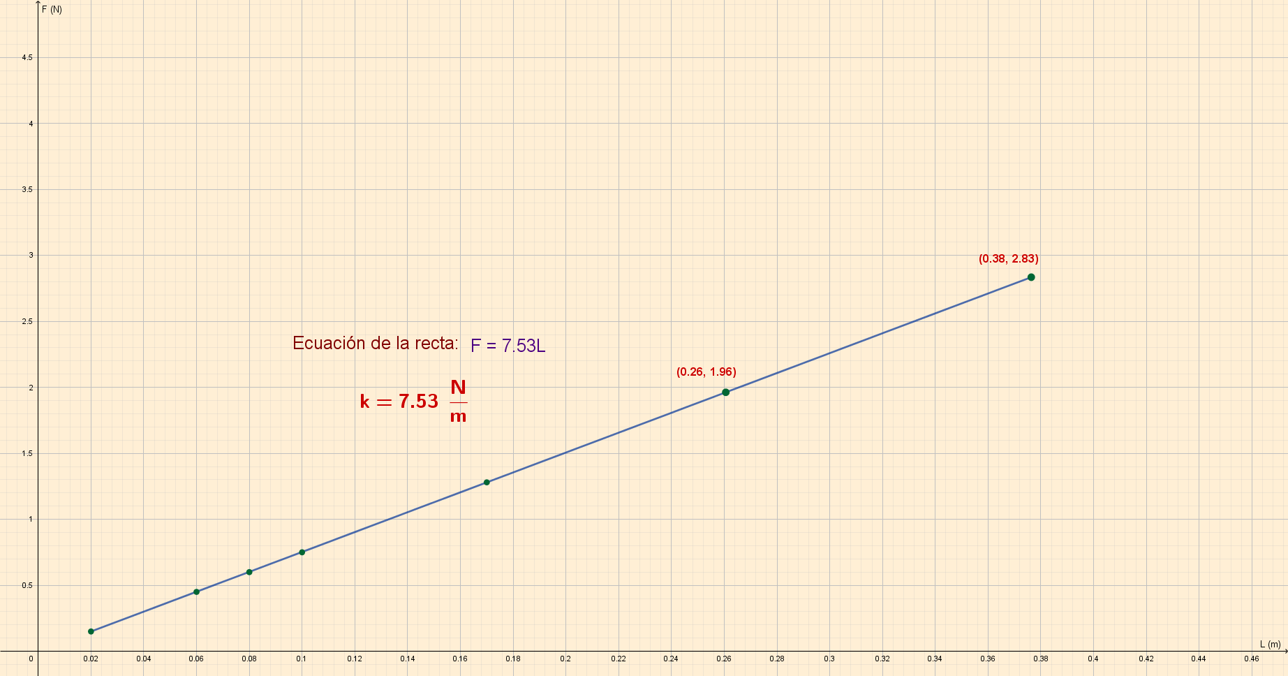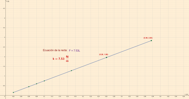 Constante elástica de un muelle con los datos de un experimento (7037)