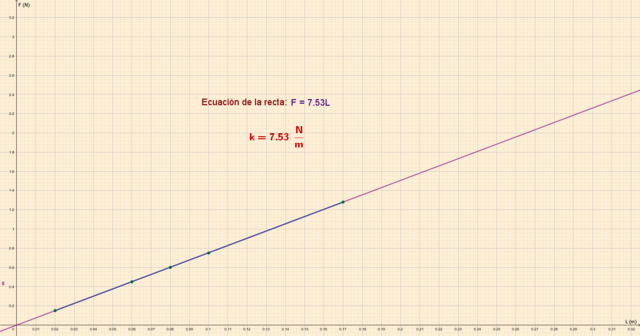 Para determinar la constante elástica de un muelle en un laboratorio se usan distintos pesos y se miden las longitudes absolutas del muelle cuando se le cuelgan los pesos. Los datos se recogen en la siguiente tabla: