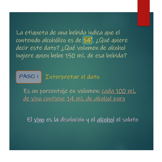 . ¿Qué quiere decir este dato? ¿Qué volumen de alcohol ingiere quien bebe 150 mL de esa bebida?