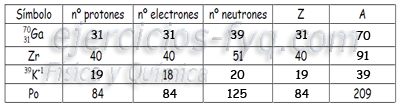 Cuestión átomo 0006 Lunes 12 de julio de 2010, por F_y_Q | Masa atómica Número atómico Completa la tabla: