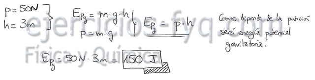 ¿Cuál sería la energía de un objeto de 50 N de peso que está sobre una estantería de 3 m de altura? ¿Qué tipo de energía es?
