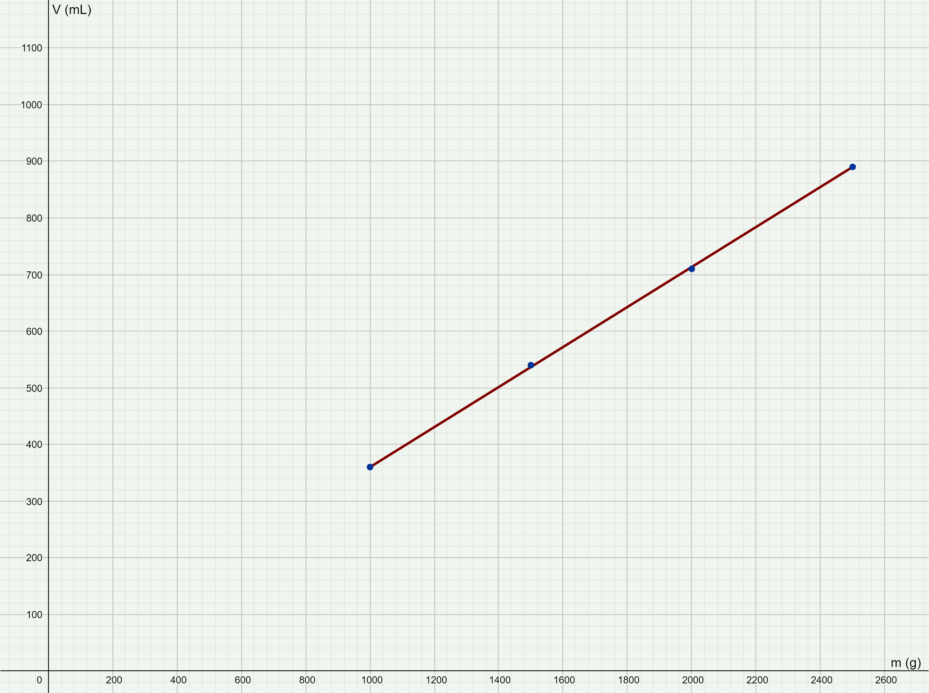 Para medir la densidad del granito se han medido la masa y el volumen de varias muestras de dicho material, obteniéndose los siguientes resultados: