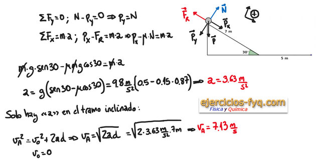 b) La velocidad del objeto al final del recorrido si sobre el tramo horizontal no hay rozamiento.