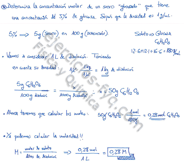 Determina la concentración molar de un suero glucosado que tiene una concentración del