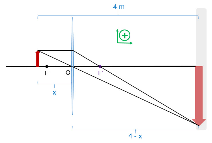 b) Un objeto luminoso se encuentra a 4 m de una pantalla. Mediante una lente situada entre el objeto y la pantalla se pretende obtener una imagen del objeto sobre la pantalla que sea real, invertida y tres veces mayor que él. Determina el tipo de lente que se tiene que utilizar, así como su distancia focal y la posición en la que debe situarse, justificando tus respuestas.