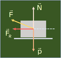 . Sobre el bloque actúa una fuerza de módulo 20 N dirigida hacia la izquierda y que forma un ángulo de
