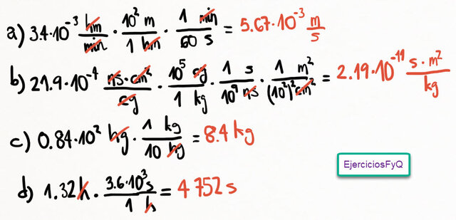 Ejercicio cambio de unidades (934) Lunes 12 de julio de 2010, por F_y_Q | Unidades Notación científica RESUELTO Cambia a unidades S.I: a) b) c) d)