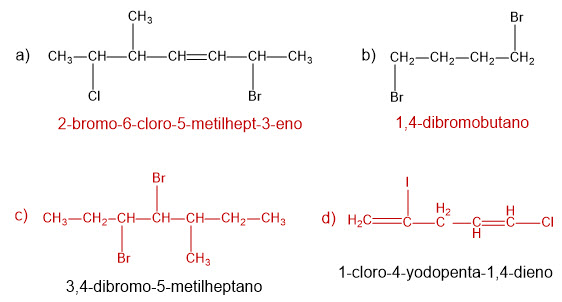 Ejercicio formulación orgánica (37) Sábado 5 de diciembre de 2009, por F_y_Q | Nomenclatura orgánica Halogenuros RESUELTO Nombra y formula: c) 3,4-dibromo-5-metilheptano d) 1-cloro-4-yodopenta-1,4-dieno