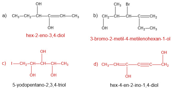 Ejercicio formulación orgánica (38) Sábado 5 de diciembre de 2009, por F_y_Q | Nomenclatura orgánica Alcoholes RESUELTO IUPAC (1993) Nombra y formula: c) 5-yodopentano-2,3,4-triol d) hex-4-en-2-ino-1,4-diol