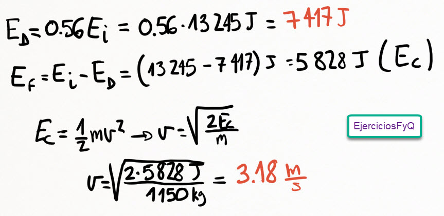 Energía que se degrada en una frenada y velocidad final del coche (939)