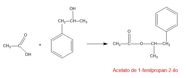 Formula y nombra el producto obtenido cuando se hace reaccionar el 1-fenilpropan-2-ol con ácido acético.