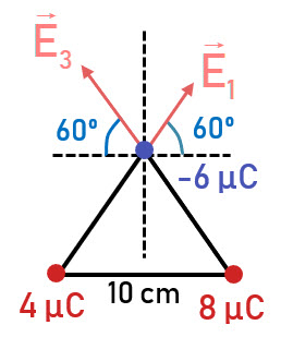 Fuerza creada por dos cargas positivas sobre una negativa en los vértices de un triángulo (5023)