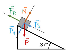 Fuerza de fricción sobre un bloque que cae por un plano inclinado (8332)