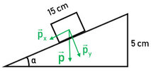 Hallar el valor de la fuerza para mantener un pedazo de hielo que pesa 80 kg en equilibrio sobre un plano inclinado de 15 cm de largo por 5 cm de alto.