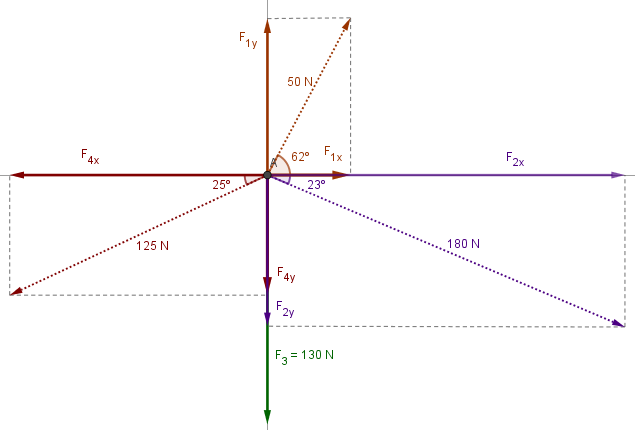 Fuerza resultante de cuatro fuerzas concurrentes (6855)