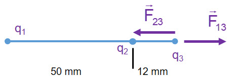 Fuerza resultante en una tercera carga debido a las otras dos (6875)