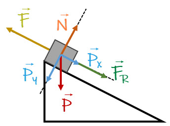 Dibuja las fuerzas que actúan en el siguiente sistema y halla la aceleración del mismo, suponiendo que el ángulo de inclinación del plano es