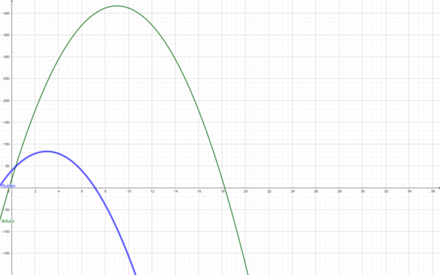 Arturo se encuentra en el cuarto piso (19,6 m sobre el suelo) de ocho que integran un edificio, mientras que Rubén se encuentra en la azotea (39,2 m sobre el suelo). Si Arturo lanza un proyectil verticalmente hacia arriba con velocidad inicial de 88,2 m/s y Rubén hace lo propio con velocidad inicial de 29,4 m/s.
