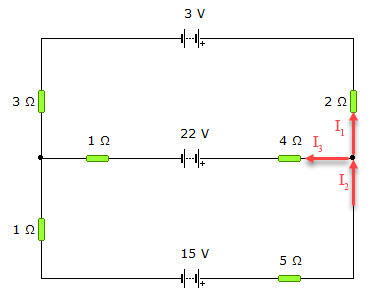 Leyes de Kirchhoff: intensidades de corriente en las ramas de un circuito (7421) Sábado 11 de diciembre de 2021, por F_y_Q | Ley de Kirchhoff RESUELTO Determina las intensidades de corriente en cada rama en el circuito de la figura: