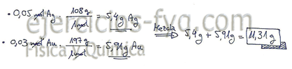 Masas atómicas: Ag = 108 u ; Au = 197 u.