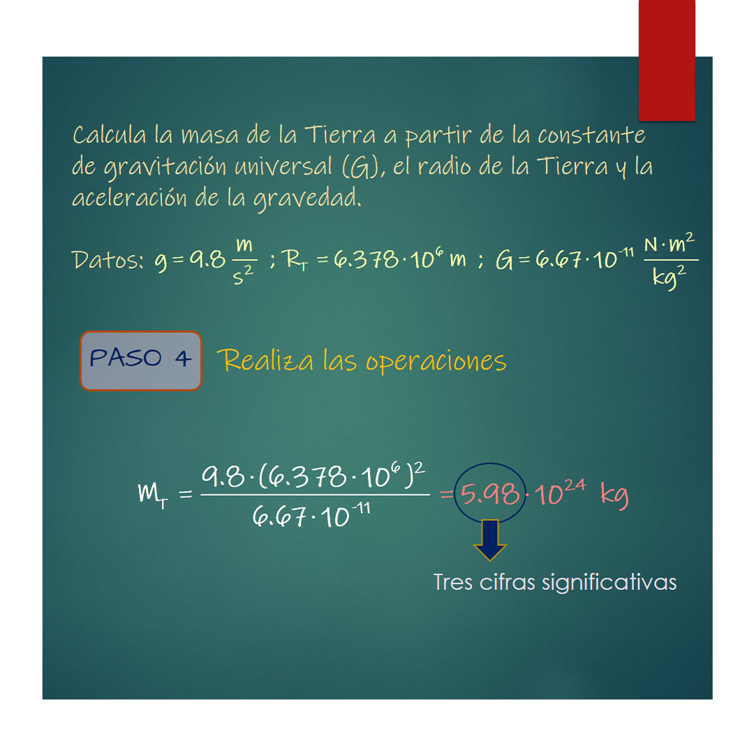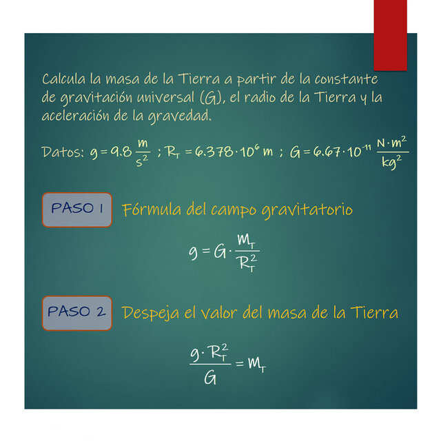 Calcula la masa de la Tierra si conoces la constante de gravitación universal (G), el radio de la Tierra y la aceleración de la gravedad.