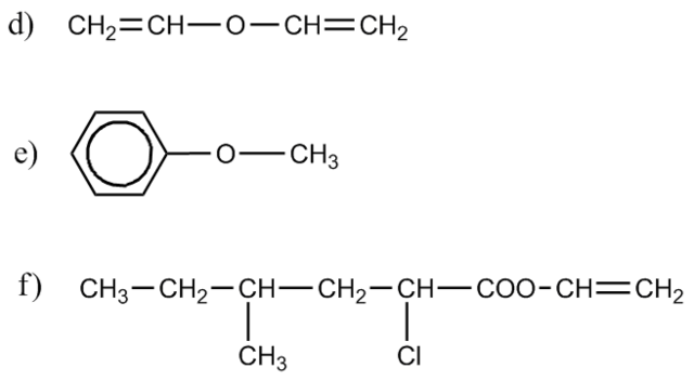 f) 2-cloro-4-metilhexanoato de etenilo