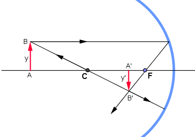 Delante de un espejo esférico cóncavo de 32 cm de radio, se sitúa un objeto de 3 cm de altura que reposa sobre el eje óptico a una distancia de 40 cm de su vértice: