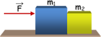 , pueden deslizarse sin rozamiento sobre una mesa horizontal. Se ejerce una fuerza constante (F) sobre el bloque de masa