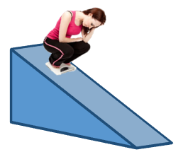 Se sitúa una persona de masa «m» sobre una báscula que desliza sin rozamiento sobre un plano inclinado con un ángulo