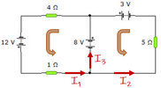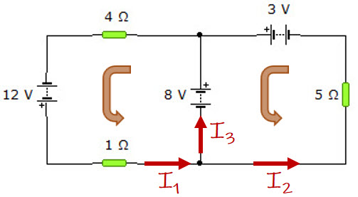 En el circuito eléctrico mostrado en el esquema, determina la potencia, expresada en W, que entrega la fuente de 12 V y la corriente que circula por cada rama. Considera fuentes ideales.