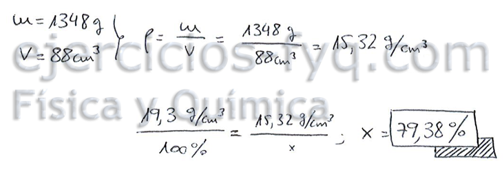 En un campeonato de tenis entregaron al ganador una copa de oro. Sin embargo, dudando que toda la copa fuera de oro, su ganador la pesó (obteniendo un resultado de 1 348 g) y midió su volumen (obteniendo un resultado de