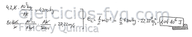 Un camión de 4,2 toneladas viaja con una rapidez de 80 km/h por una carretera recta. ¿Cuál es su energía cinética?