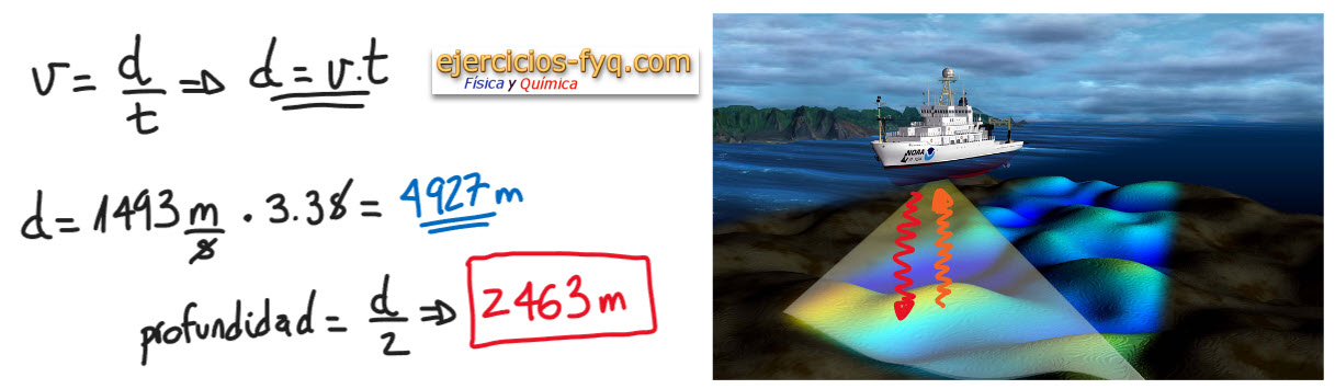 Dato: La velocidad del sonido en el agua es de 1 493 m/s.