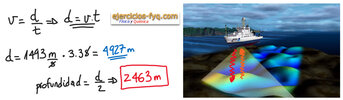 El sónar es un sistema de navegación que emplea ondas sonoras para situarse y posicionar objetos. Si el tiempo que tarda en recibir un emisor el eco de sus señales es de 3.3 s, ¿a qué profundidad se encuentra?