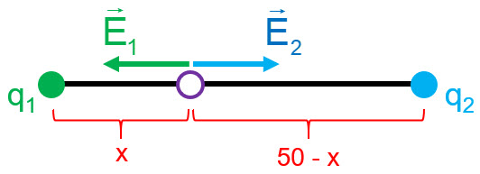 se separan una distancia de 50 cm. Determina la posición en la que se puede colocar una tercera carga de