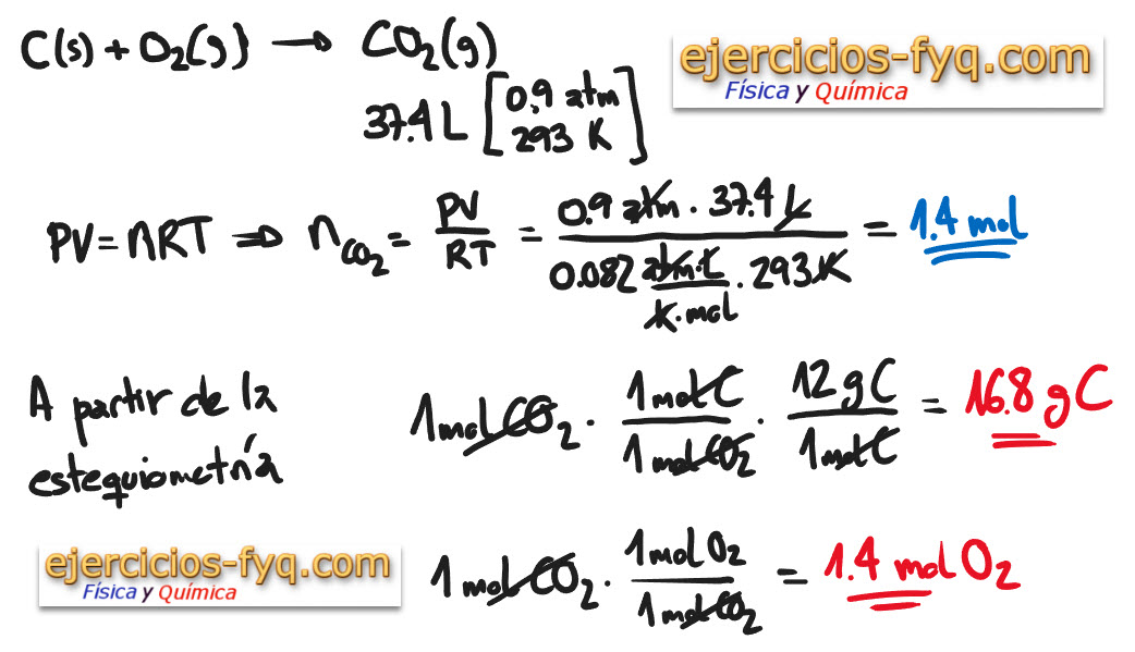 Quemamos cierta cantidad de carbono con oxígeno y obtenemos 37.4 L de