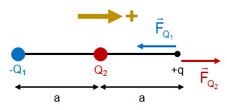 Relación entre dos cargas para que la fuerza en una tercera sea nula (7396)