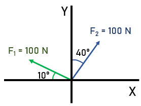 Dos fuerzas actúan sobre un cuerpo como se muestra en el siguiente diagrama. Determina el vector, su módulo y dirección de la fuerza necesaria para que la resultante de las tres fuerzas sea cero.